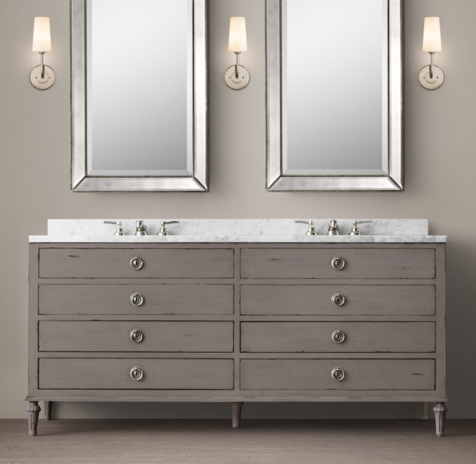 From sleek and modern stainless steel to rustic and weathered oak, restoration hardware has a bathroom vanity for every home and taste. But its hard to find a vanity that doesnt look cheap and cheesy or completely space age though i do love many of those. Not only restoration hardware bathroom vanities, you could also find another pics such as bathroom vanities tops, bathroom vanity and sink, bathroom vanities white, bathroom vanity with cabinet, antique vanity bathroom, wood vanity bathroom, single vanity bathroom. Michael is currently working on the master bath and she is facing some tough decisions. Inspired by 1970s postmodernism, slender metal accents lend a lustrous note to the streamlined silhouette. I thought it was time to include some traditional bathroom vanities from the folks at restoration hardware. Find great deals on ebay for bathroom vanity restoration hardware. Do you think restoration hardware bathroom vanities and cabinets appears to be like nice? Love the style of restoration hardware bathroom vanities? Bathroom vanities from restoration hardware are cool. Remodelista's picks for bathroom vanities from our authorative sourcebook for home furnishings and home remodeling with over 1000s of carefully selected products to make the best of remodelista's picks for bathroom vanities, including modern and rustic bathroom vanities from ikea and more. Bathroom restoration hardware bathroom lighting kitchen pendant. But with sky high prices, you may be wondering if you can't find those same styles online for less.